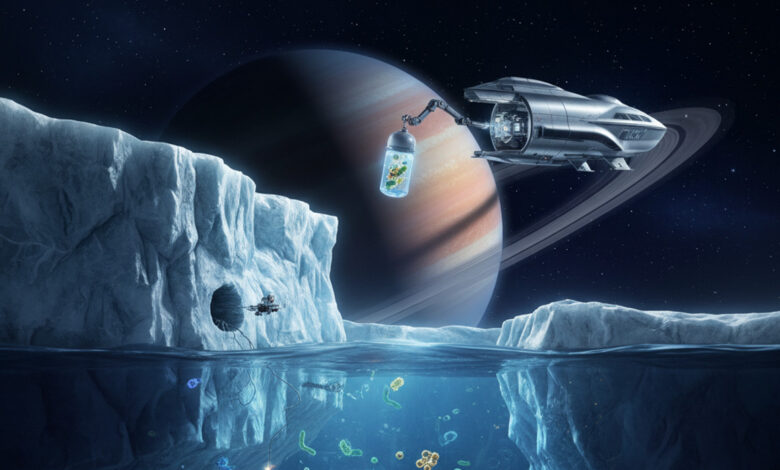 Europa (Księżyc Jowisza): Europa, z oceanem pod grubą skorupą lodu, jest kolejnym priorytetowym kandydatem astrobiologicznym52. Woda oceanu na Europie również styka się ze skalistym jądrem. Kluczowe może być istnienie potencjału redoks, podobnie jak w Antarktydzie. Utleniacze mogłyby być dostarczane do oceanu z lodu (w wyniku np. radiolizy lodu przez promieniowanie), podczas gdy reduktory (jak H2​) pochodziłyby z aktywności geochemicznej skalistego jądra. Analogia: Jezioro Whillans, ze swoją temperaturą −0.5∘C, może stanowić analog dla górnych, chłodniejszych warstw oceanu Europy.